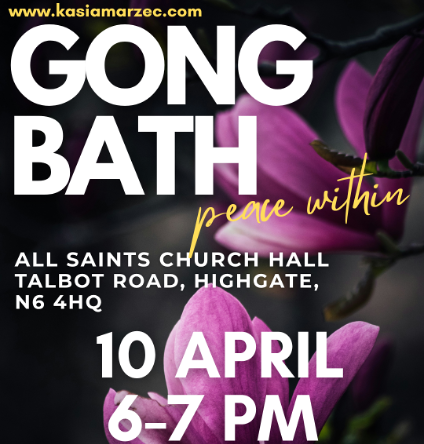 This Gong Bath will be held in Highgate North London and is easily accessible from Archway, Hampstead, Crouch End, Hornsey and Mill Hill